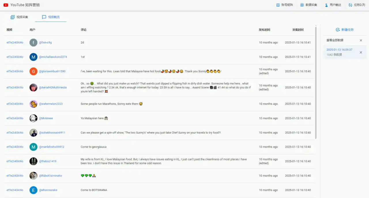 可采集指定视频所有评论,指定用户所有视频所有评论数据