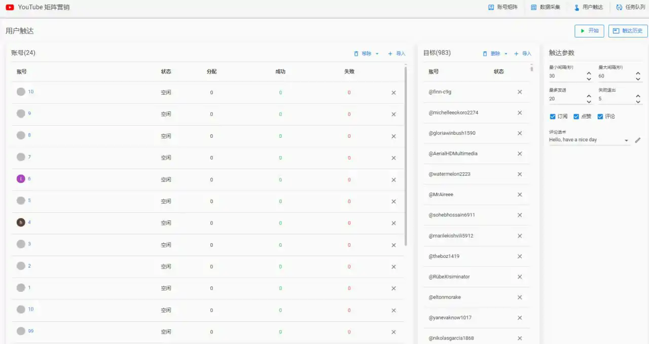 批量点赞,评论,订阅指定用户,支持批量账号点赞,订阅批量用户